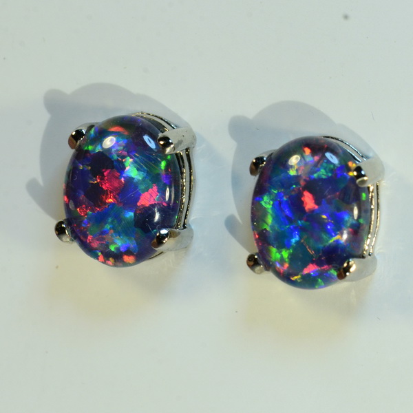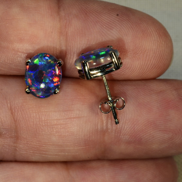 Opal October Birthstone and what a wonderful gift idea these gorgeous earrings are. I’ve set these beautifully matched South Australian gem quality 10mm X 8mm opal triplets into solid 18k yellow gold studs (prefer 18k white gold? let me know and I’ll swap out the opals for you) and these are bright with lots of color movement.These N1 dark, 4 out of 5 Bright gemstones are sure to bring a smile to the face of their new owner.