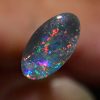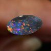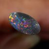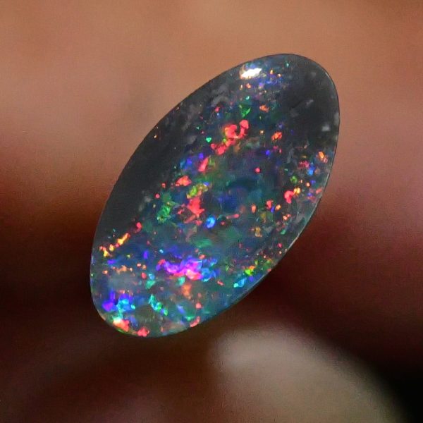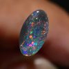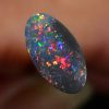 Lots of reds, orange and pinks with hints of blue and yellow colours in this beautiful natural solid black opal from the famous opal mining area of Lightning Ridge Australia. Measuring 9.03mm X 4.90mm X 2.58mm thick, this natural solid N4 darkness, 3.7 out of 5 bright, .88 carat opal would make a magnificent ring.