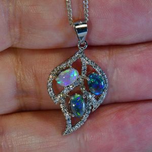 Genuine Lightning Ridge Australia Opals Solid 925 silver pendant (17426)